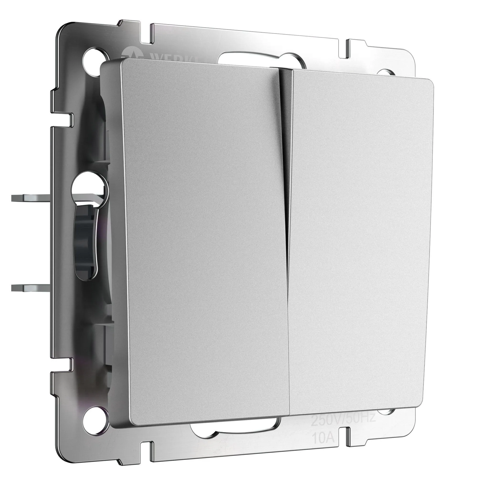 Выключатель двухклавишный проходной Werkel серебряный матовый — управление светом из двух и более точек