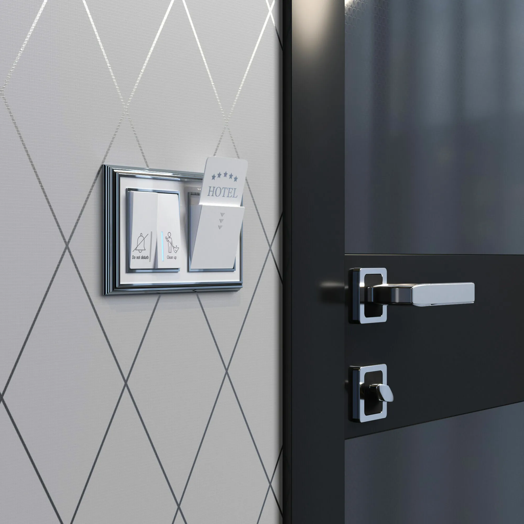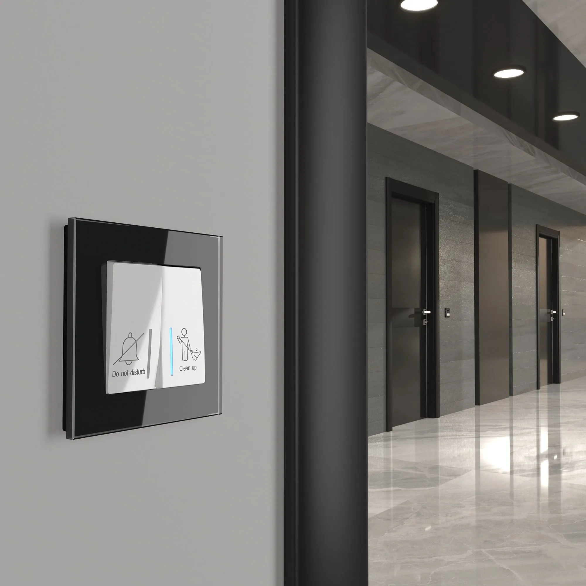 • Режим «Не беспокоить»: При активации отключает дверной звонок и информирует персонал о необходимости не входить в номер, гарантируя приватность и комфорт для гостей.