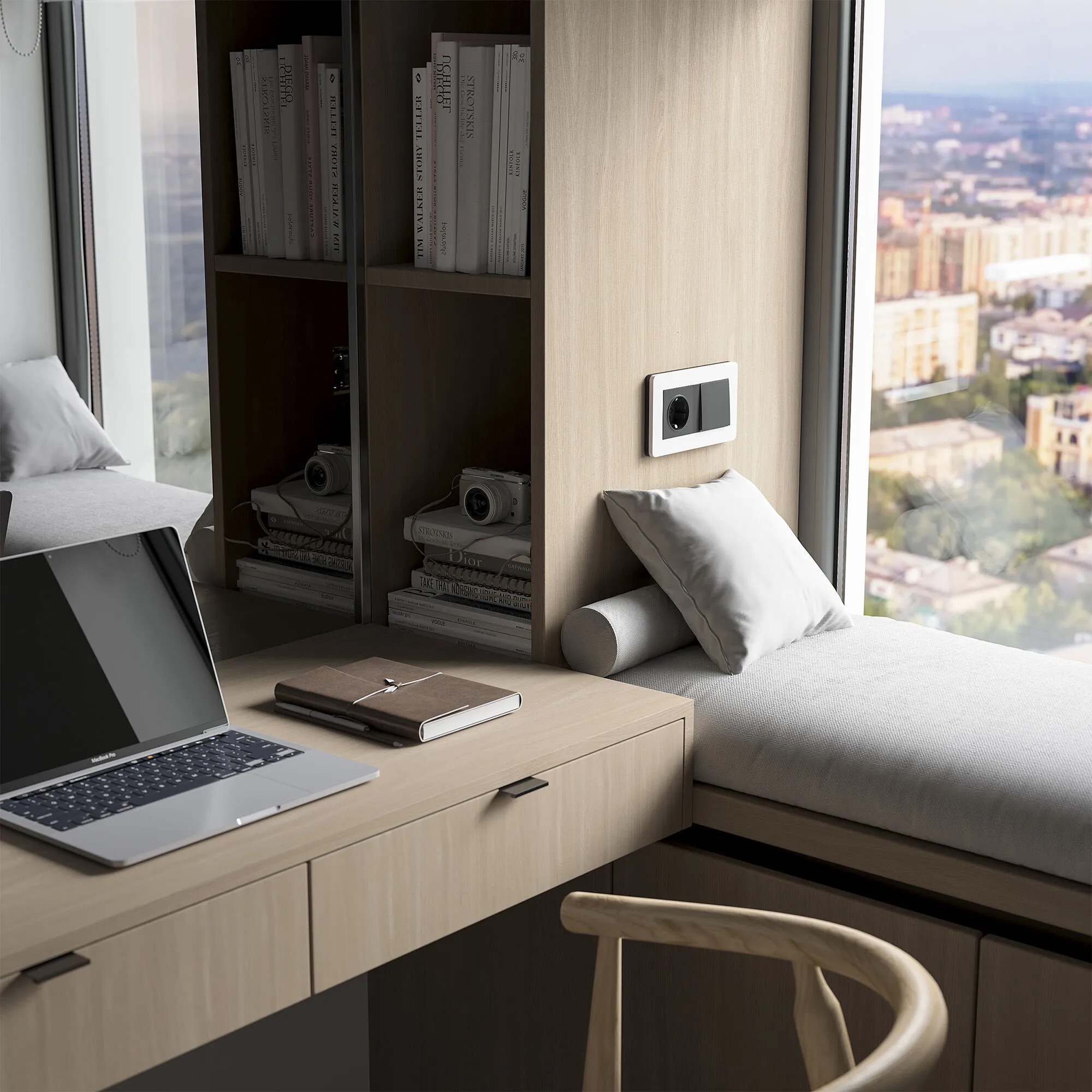 Серия Split — это инновационная серия с тонкими рамками и матовыми механизмами, где каждая деталь продумана до миллиметра . Хотя серия вдохновлена скандинавским дизайном, её лаконичность отлично работает и в лофте.