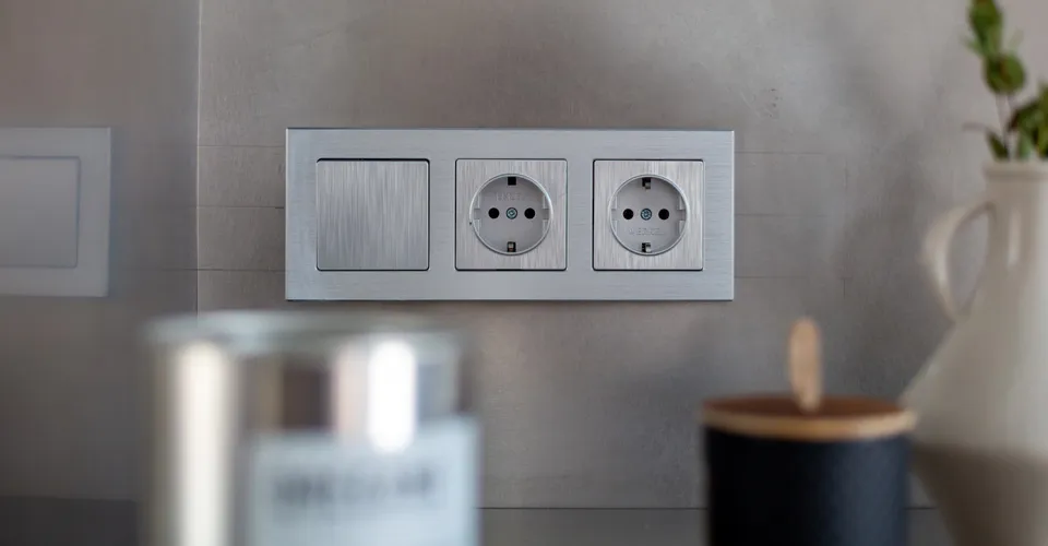 Для проекта были выбраны рамки, розетки и выключатели торговой марки Werkel. Механизмы с накладными панелями в цвете серебряный рифленый дополнены металлическими рамками из серии Aluminium . Их дизайн с эффектом шлифованной поверхности идеально сочетается с интерьером, дополняя металлические предметы мебели и декора.