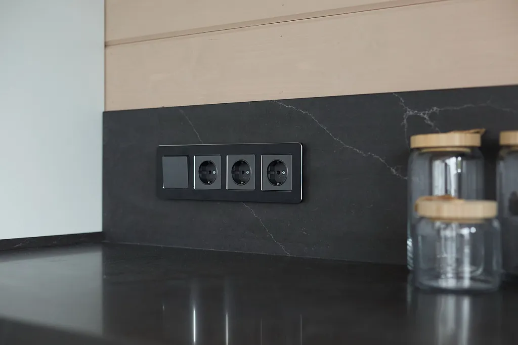 Завершающим штрихом стали матовые розетки и выключатели в цвете графит от Werkel™, обрамленные черными рамками серии Platinum из литого анодированного алюминия. Эти изделия не только выполнили свою функциональную задачу, но и стали стильным дополнением интерьера, подчеркивая его современный характер.