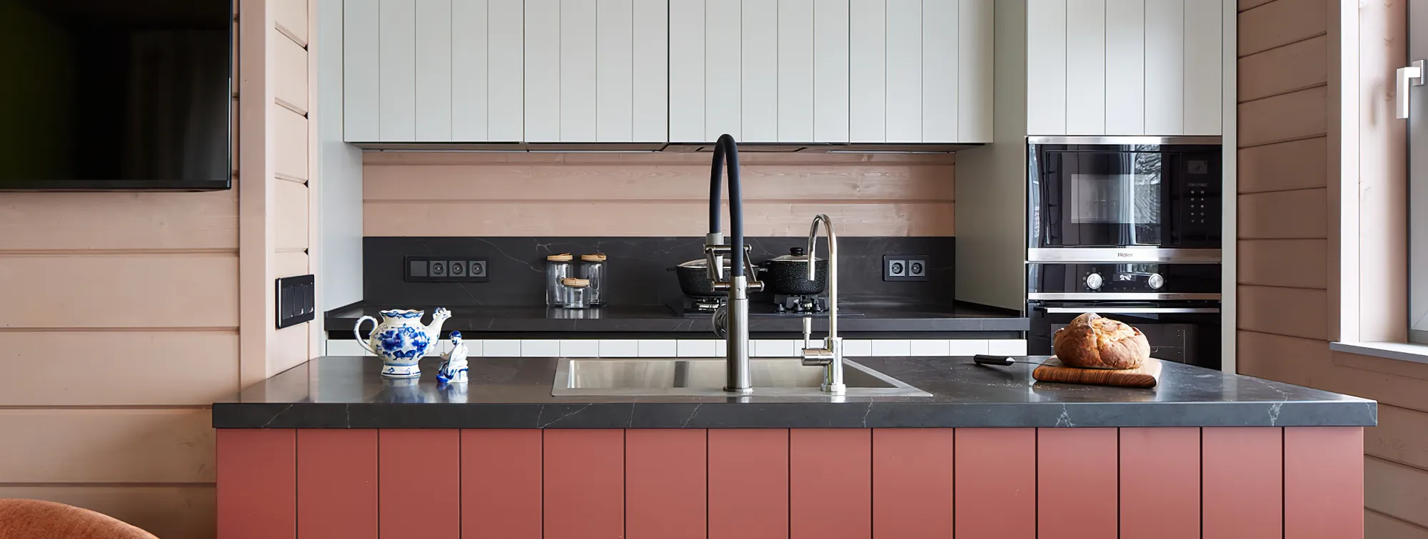 Благодаря продуманному дизайну и вниманию к деталям, кухня-гостиная превратилась в уникальное пространство, где традиции и современность переплетаются. Как отметили авторы проекта, даже такие элементы, как розетки и выключатели, сыграли важную роль в создании целостного образа.